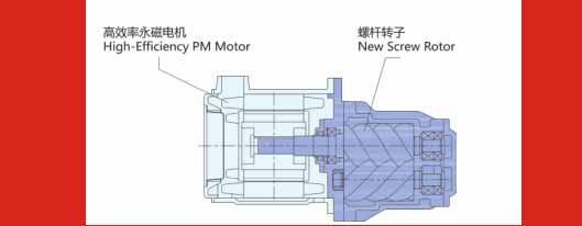 螺桿主機(jī),高效率、低轉(zhuǎn)速,轉(zhuǎn)子采用第三代5:6齒型號(hào),型線設(shè)計(jì),低噪音,低能耗,低維護(hù)費(fèi)用,具有可靠性和使用性。永磁電機(jī)與壓縮機(jī)主機(jī)采用內(nèi)嵌式一體軸直連結(jié)構(gòu)結(jié)構(gòu)更加緊湊,傳動(dòng)效率更高